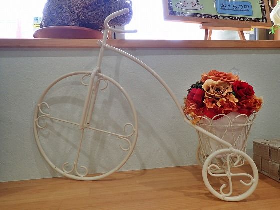 「triciclo deli さんりんしゃ」のネーミング通り、店内には可愛い三輪車。