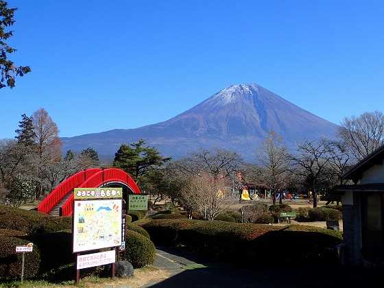 同敷地内にある遊園地(別料金)入口から富士山を望む。