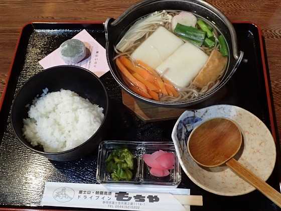 手打ちそば に つきたてのお餅が2個入っている定食です。その上、