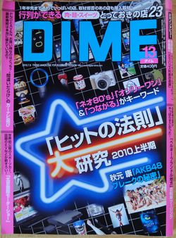 今日は、七夕ですね。素敵な願い事があればいいのですが、早く痒みが収まってほしい くらいかな。久しぶりに雑誌を読んでみたくなりました。こういう感覚は、久しぶりですね。以前は、月に何冊も購入して読んでいたものですが、気分やなのです。手ごろなDIMEを買ってみました。DIME (ダイム) 2010年 7/6号 [雑誌]相変わらず、今の時期に合ったものや、思わず食べに行きたくなるものや、色々あって楽しい。値段の割に、情報量は多いような気がします。読み進んでいくうちに、不思議な記事に出会いました。インテリジェンスとは?に焦点が当てられていました。トヨタのリコール問題などは、インテリジェンスサイクルが回っていなかったとの意見に、確かに と思ってしまいますね。中の写真を貼ってもいいのかなあ。まあ、内容が不鮮明ならいいか。先日読んだ、”KATANA”なども、現実の出来事が、後から小説を追いかけたりして。そんな気がしてきました。KATANAKATANA