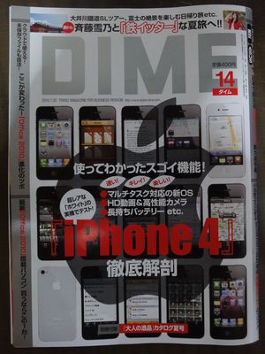 相変わらずの雨です。ただ、幸いなことに、近くでJRの遅れなどを除いて被害は出ていないようです。さて、雑誌DIMEのiPhone4特集を読んでみました。DIME (ダイム) 2010年 7/20号 [雑誌]この記事のすごいところは、まだ未発売だったと記憶している ”白いiPhone4”を使っているところだと思います。記事の内容を読んでいると、使いたくなってきますね。そうなんです。私は、iPhoneを使ったことがないのです。いつかは・・・ と思いながら、使い切れない様な気がして踏み出していません。ところで、この記事には話題になっている通信不具合に関する内容は、触れられていません。意図的にしているのでしょうね。そうこうしていると、最近、「推奨できない」という記事も出ていました。http://itpro.nikkeibp.co.jp/article/NEWS/20100713/350203/何らかの形で触れてもいいという気もしたのですが、日本では影響ない?記事の中には、アクセサリーとしてカバーもありました。こういうのをしていると、電波障害対応にもなっていいのでしょうか?割と、カバーは売れているようですね。[iPhone4専用カバー] スリップガード シリコンジャケット(ブラック) RT-P3C2/B【iPhoneソフト...iPhone4を擦り傷や汚れなどから守るTPUケース。ケースに入れたまま、Dockコネクタに接続可能(...iPhone 4用スリップガードシリコンジャケットレイ・アウト iPhone4 スリップガードシリコンジャ...