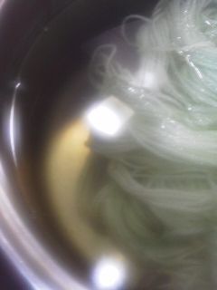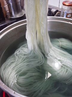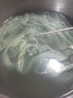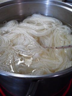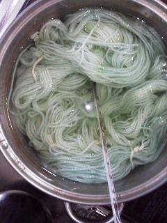 40分ほど煮たところに 糸投入 この時点では おそうめん湯がいてるみたいですが(笑)