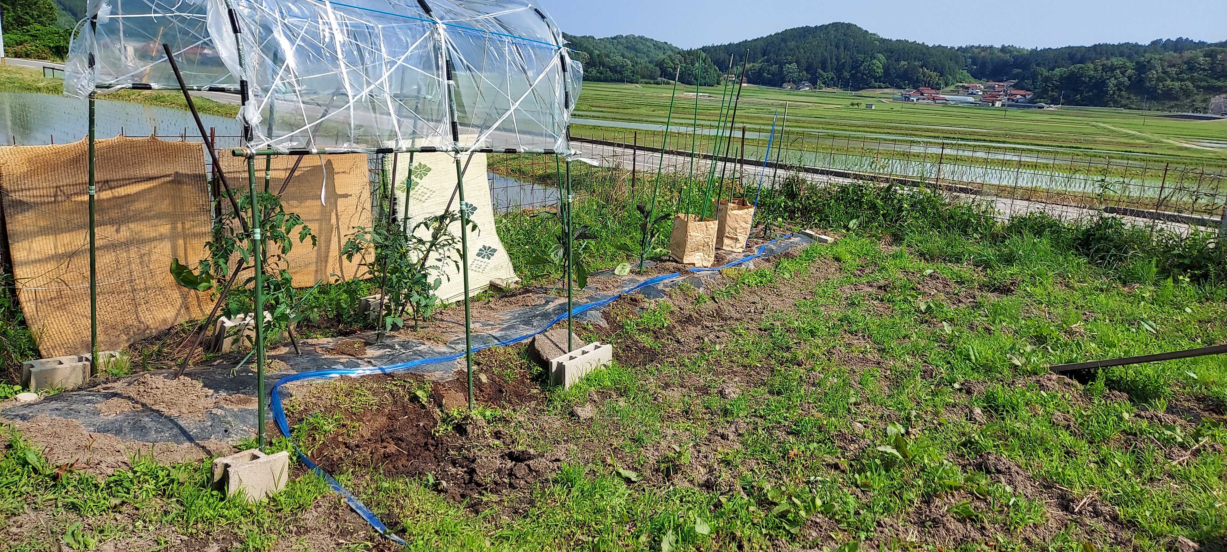有田秀穂先生はうつ病はセロトニン神経系の機能障害で起きていると指摘されています。セロトニンは、誰にもあるような不安や心配ごとに対して抑制的に働きます。セロトニン神経系を鍛えると、不安を「そんなこともあるよね」と受け流すことができるようになるのです。セロトニン健康法について精神科医の有田秀穂先生の話をもとに考えてみたい。1、セロトニンは覚醒時常時出続けているが、注意や意識を何かに集中した時は止まる。その時はノルアドレナリンやドーパミンが出ている。注意や意識を不安の一点に集中していると、セロトニンの制御力は働かなくなり、不安は精神交互作用でどんどん増悪する。不安に注意を向けて安全が確認出来たらすぐにその場を離れる。解決できない神経症的な不安は先送りしていくのが賢明である。2、毎日リズム運動を15分から30分間行うことが重要になる。毎日継続すること。できれば3か月は継続する。運動は何でもよい。ウォーキング、犬の散歩、階段上り、踊り、歌を歌うなど。やりすぎると乳酸によりセロトニンの効果は薄れるので注意すること。3、腹筋呼吸を行う。胸式呼吸や横隔膜呼吸ではセロトニン神経は鍛えられない。腹筋呼吸法の詳細は明日投稿します。4、キシリトールガムを噛むなどの咀嚼行為が有効である。食べ物はよく噛んで食べるようにする。5、セロトニン神経は太陽の光で活性化されます。太陽の光を毎日20分くらい浴びる。それ以上浴び続けるとセロトニン効果は薄まる。6、セロトニンの前躯体は腸でトリプトファンから作られている。バナナ、大豆製品、チーズなどをしっかりと食べる。食事は炭水化物食事がよいとされています。なお、サプリメントとしてセロトニン前駆物質あるいは関連物質を摂取することは間違いです。必ず副作用が出ます。間違ってもしないでください。(セロトニン欠乏症 有田秀穂 生活人新書 参照)認知症や寝たきりを予防して、心身ともに健康に生活していくために、セロトニンを作り出す健康法をお勧めします。毎日の生活の中に組み込んでいくことが肝心です。5月の連休に植えた現在の自家菜園の状況です。ミニトマトは第2果房まで花が咲いています。ナス、ピーマン、シシトウ、カボチャは大風のため初期生育不良ですが、黒マルチで地温を上げ、一部風よけを作ったので、この先持ち直してくれることを期待しております。ピーマンは風に弱いので、現在行灯をつけて保護しております。今後ミニトマトは2本仕立て、ナスは3本仕立てで育てていく予定です。今後は脇芽かき、誘引、肥料やりの作業が続いていきます。青いチューブから1日2回15分自動灌水しています。これは1週間に1回しか田舎に帰れないためです。今後の野菜の成長が楽しみです。