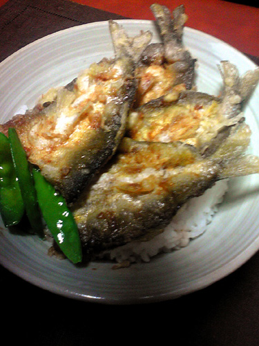 最近作った鮎料理です 鮎天丼背から開いて薄目の衣をつけてサラダ油だけで揚げました丼つゆはしょうゆ、酒、みりんを煮詰めた甘辛いものです意外と甘辛い丼つゆも合いますねこれは素晴らしく美味かったです 鮎そば開いた鮎に軽く薄力粉をつけて、サラダ油にごま油を少し足して揚げました鮎に限っては、ごま油は入れない方がいいと思いましたワタは取ってるのですが、腹の微妙な苦味がごま油によって不味い方向に作用してる気がしました魚に付いた放射性物質は、魚体の表面と、中骨、内臓に溜まるそうです(ソースはNHK21時のニュース)なので、調理前よく塩で揉んで、開いて内臓は綺麗に取るスタイルで調理しました早く、そんなことを気にしないで鮎が美味しく食べられる環境に戻って欲しいですね