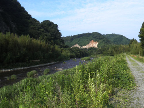 九頭竜川の他にも色々候補があって悩みました北陸はもう殆どの河川に鮎が遡上するのですが、日釣り券を発行している川がとても少ないのです石川県内では小松の大聖寺川しかないそうですそして、当日は数日前に大雨が降っていて、増水は引いたもののダムの放出から濁りが予想されるというのもありました大規模河川でないと、逃げ場がなくて一日悪コンディションの中で釣りをしなくてはならなくなるという懸念ですまぁ決め手は「九頭竜川」という名前なんですけどね、これは自分の希望で推しました何しろ九つの頭の竜ですからね、この時点で神がかってます地元の鮎仲間や釣具屋の店員に「大聖寺川行ってきた」と言っても「へーどこ?それ」みたいな反応だと思いますがこれが「九頭竜行ってきたぜ!」ではインパクトが違います金沢西ICから北陸道で福井北IC、目的地の勝山までは1時間半ほどで到着しましたKさん曰く、北陸では移動に1時間以上かけるのは遠征の部類だそうです勝山からの上流ビューですあの山の向こうには郡上の長良川、その先の山の向こうは天竜川、もう一つ山を越えれば大井川、富士川...まだ九頭竜川でも竿も出してないのに何だか胸が熱くなりますKさんの予想通り九頭竜もかなり濁りが酷い状況でした橋があれば止まって川見をして周りました濁りの中でも追いの強い鮎は多く、段々と期待は高まってきます勝山市街からダム下まで念入りに調査しましたKさんは、磯の釣りでもそうなんですけど、中々竿を出さないタイプなのです1時間ほど調査をして、地元では有名な石田おとり店で鮎と入漁券を購入お店の方の話では、右岸に流れ込んでいる野津又川という支流に入ると良いとのことでした日券は3000円、これは高いと思いました、多分今までの最高額です北陸は日釣り券を発行しないもしくは高い...なんという排他的遊漁水域なのでしょうか石田おとり店から5分ほど走り野津又川到着小さな川ですが、九頭竜本流に比べるとかなり水が澄んでいてストレスなく釣りが出来そうですお世話になったKさん