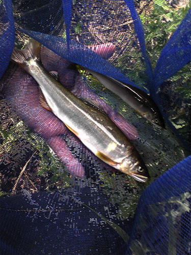 今シーズンは2日程釣行入ったポイント街裏左岸合流点左岸テトラ脇水深深い、オモリ使用追い気のある鮎を掛けるというより、群れになじませるといった感じだった