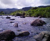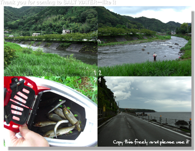 今日のBGM Bob Dylan - Like A Rolling Stone先週は河津川に鮎釣りに行ってきた。本当は、行ったことのない川に行きたかったのだけど、何だか今年はどこも良くないというか、釣れているのは河津だけらしい。コーチは以前に引き続いてKさんにお願いした。今回は道具のことでも随分とお世話になった。どうもありがとうございました。ちょっと訳あって遅刻しそうだったので、Kさんに囮を頼んでいたら3つも用意してくれている。ということは、河津でも相当悪いんだなと私でも解った。大雨が降ったりやんだりする天気だったけど、ポツポツと鮎は掛かってくれた。しかも、そんなに小さいサイズばかりでもない。この日はKさんのアドバイスでおばせによる鮎の誘導を意識してみた。水中の糸ふけによって鮎を止めたり、移動させたりというもので、慣れてない私はやはりすこしイラっとくる。ルアーや磯の釣りは、ココをやりたいと思ったら、すぐにアプローチできるのだけど、この場合ポイントを探るのは鮎任せということになるからだ。しかし、後半その重要性が解ってきた。午後になると時合いなのかパッタリと追わなくなってしまい、掛からないイライラで囮を引きずり回してポイントに誘導させていた為、まともに動く鮎が殆どいなくなってしまったのだ。もっと大事に扱えば、もう少し釣れたかもしれない。1→河津川2→Kさんも結構苦戦していた3→状況は悪かったけど、それでも10位掛けることが出来た4→鮎達がお疲れの様子なので15時位に撤収帰り始めたら前線が北に抜けていったみたいな、まぁそんな一日だった