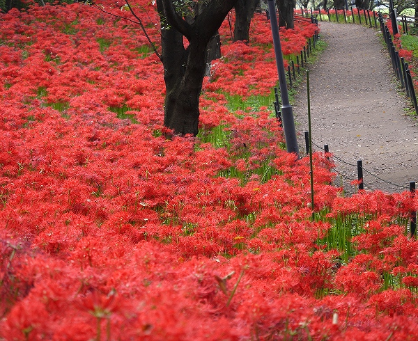 連休も仕事、なおかつ今日は超早出だと言うのでお昼にまでは帰ってくる(会社に)と言う条件でmanoaと埼玉県幸手市にある権現堂公園まで曼珠沙華(ヒガンバナ)を見に行ってきました。権現堂公園に植えられている曼珠沙華は100万本 平成12年より始めた曼珠沙華の植栽は市民ボランティアの方々がずっと大切に育てておられるのですって言うか、フォト蔵さまが重過ぎて、ブログと行ったり来たりが時間かかるのなんのって・・・ まだ開花状況は6割ぐらいと聞いていましたが 蕾の姿も魅力のひとつプックリ膨らんだ形が可愛かった 彼岸花は1本の茎に6個の花をつけ その1つの花には6つの雄しべと1つの雌しべがあり 雄しべの先端には大きなサヤが付いています 一方、雌しべの先端には何もついていませんが、花粉が付きやすくなっているのです と、悠長に写真を撮っていたように感じるでしょうがなにせmanoaを連れての写真撮影苦労が絶えなかったのでございます(ちょっと大げさ) 明日に続く(誰かさん風に 笑)