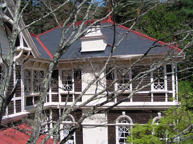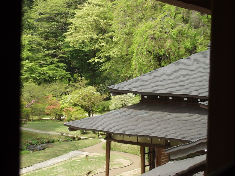 日光に行くとよく行く所の一つに、田母沢御用邸記念公園が有ります。季節によっては普段非公開の所に入れることが有ります。外側のガラス戸のガラスが当時のままの古い物が残っていて外の景色が歪んで見えます。歪んだガラス越しの風景