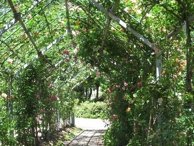 川島町の平成の森公園にある、バラのトンネルに行ってきました。園内と駐車場は無料です。トンネルの中を歩くとバラの香りがします。中から見るバラの花数はそれほど多く感じられませんが、中央にある広場からは360°バラが見られます。