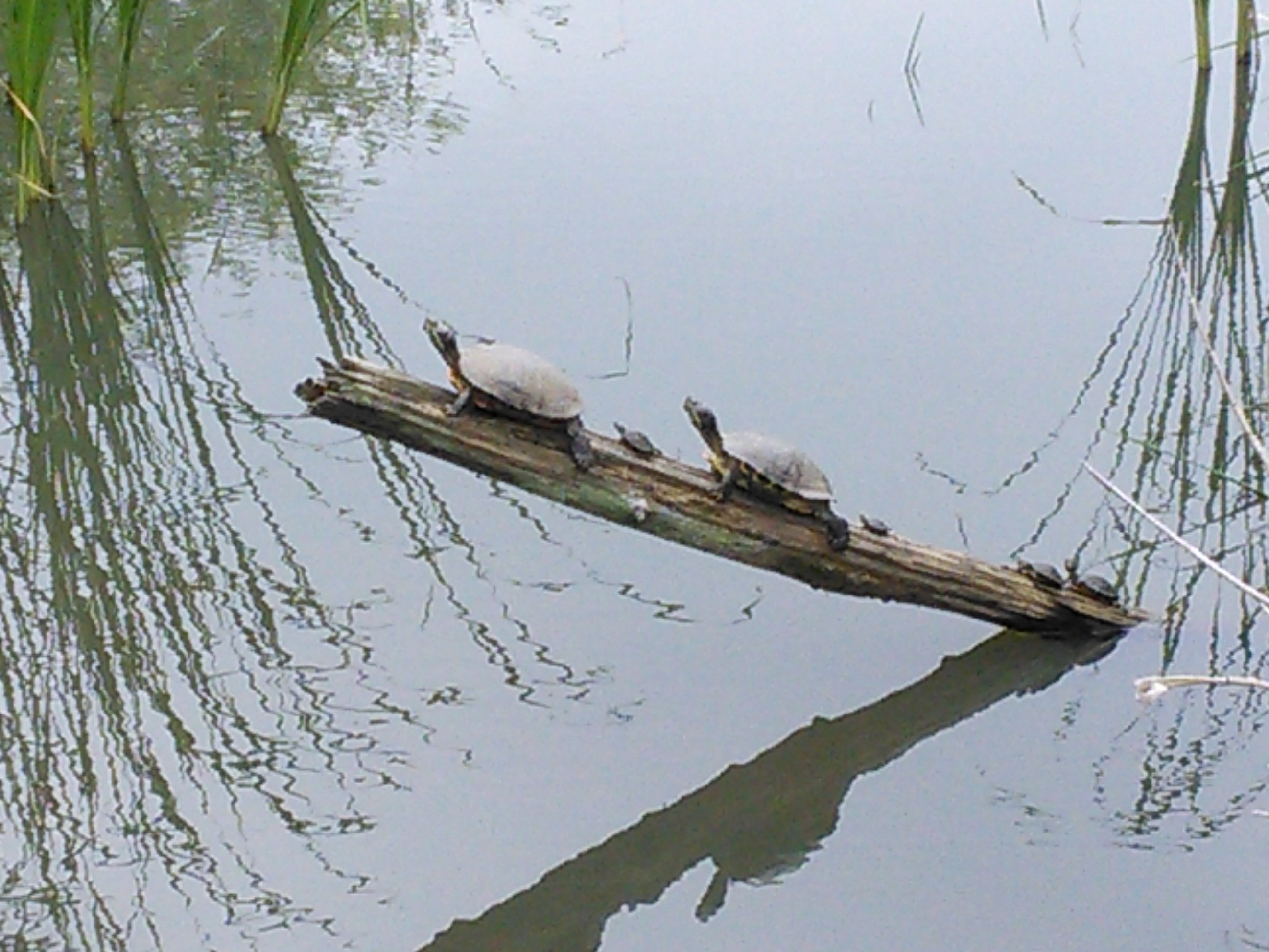 北本自然観察公園内の池(沼)にミドリガメが住んでいます。今までは気が付かなかったが、大きいのと小さいのが居るので繁殖したのかも・・・。小さい時は、肉食性が強いらしいので、魚や水生生物を食べてしまわないか心配です。駆除しないで良いのでしょうか!カメラを持って居なかったので、タブレットで撮った画像なのでちょっと鮮明さに欠けます。北本自然観察公園