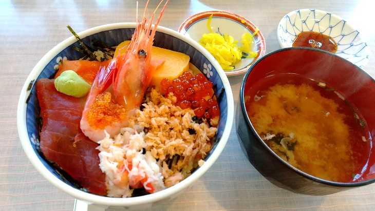 函館国際ホテルは朝食付きでしたので、朝7時からの予約で食べに行きました。昨日朝市で食べた「朝市食堂 二番館の500円丼」今日食べた手作り海鮮丼 山盛りの海鮮類朝食のすべてです(小食)海鮮丼を二日連続で食べました。今日の予定は、函館山~国際ホテル(駐車)~本町散策~アゼリア~五稜郭~空港の予定で動きます。函館山のロープウェイは法定定期検査で11/7まで運休です。頂上には、車かハイキングか登山道で行くしかありません。当然楽な車です。頂上の駐車場に止め、展望台に行きましたが時間が早かったせいか待たずに止められました。何度も来ているので特別目新しい物もなく、何枚か写真を撮ってホテルの駐車場に戻り、歩いて元町に向かいました。基坂から旧函館区公会堂・函館山をバックにいつもの様に撮影です。一時間半ぐらい歩いてホテルに帰って来て、「アゼリア」でお昼御飯です。海鮮あんかけ焼きそば 1850円北海道産帆立のシーフードサラダ 1550円焼きそばにカニの身が少し乗っていました。自慢じゃないけど、北海道で「カニ」を食べたのは初めてです!!!食べ物には満足して、次は五稜郭へ出発です。駐車料金は宿泊した翌日の2時ごろまで駐車券が使えると聞いていました。⇐使えました五稜郭近くに、「Seicomart」が有るのを確認して、五稜郭タワーに上り、五稜郭公園を散策して、「セイコーマート函館五稜郭店」に行きました。今回最大の目的の、「山わさびラーメン」を買うためです。ラベルを見たら、エースコックの東京工場(埼玉川越)製造でした⇐一寸がっがり店の在庫5個を買占め、今回の旅の成功を確信して、空港へ3時間ぐらい早くに着いてしまいました。カウンターに人が居ないので、自動発券機の初体験です。発券は、確認番号か2次元バーコードの何方かが有れば出来るようです。当然、確認番号で発券しました。帰りはANAでした。家に着いたのは、23時過ぎでした。スマホの機能の「タイムライン」で行動が分かるので利用しています。個人情報が駄々洩れでしょうが、特別問題ないです。