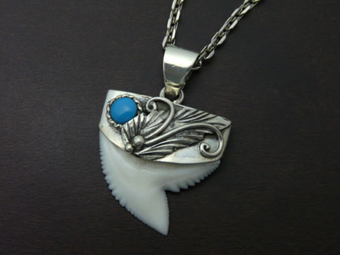 インディアンジュエリー【送料無料】 [インディアンジュエリー] silver925 サメの歯 ターコイズ(トルコ石) ペンダントトップタイガーシャーク(イタチザメ)の歯にシルバーで細かな装飾を施し、アクセントにターコイズ(トルコ石)を入れたワイルドなペンダントトップ。歯の形が独特で、亀の甲羅をも砕けるそうです。数ある中から綺麗な物を ...■☆人気ランキング☆ ジュエリー・ アクセサリー(男性用)LOUISVUITTON(ルイ・ヴィトン)GUCCI(グッチ)Cartier(カルティエ)BVLGARI(ブルガリ)martinmargiela(マルタン・マルジェラ)TIFFANY(ティファニー)dunhill(ダンヒル)