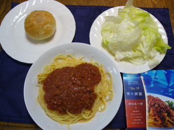 今日の晩御飯は、先日食べたいとつぶやいた、ボロネーゼ。ただ、スーパーで売っている 青の洞窟・・・レトルトです。少しトマトの酸味が強いかな。でも、肉がたくさん入っているし、レトルトとしては頑張っています。が、香りとコクを補うためにバジルとパルメザンはあった方がより良いと思います。個人的な好みとしては、予約でいっぱいのボロネーゼです。パンはトースターでカリッとさせて、テールドトリュフ東京以来お気に入りの、黒トリュフ入りオリーブオイル(テールドトリュフのは高過ぎるので成城石井の)をつけて。サラダはレタスのみをシーザードレッシングで。
