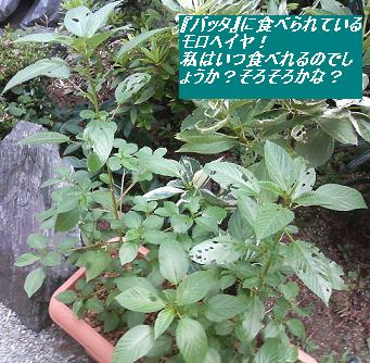 青シソは、虫除けのために、ベランダにプランターを置き栽培していましたが、日光が良く当たりすぎるために葉が硬くなってきました。そこで、土に地下植えに変更していました。植え替えて1週間以上立ち、やっと再び成長を始めたようです。ただ、予想していたように・・・イモムシ系に3株中2株がやられ始めています。見つけたら直ぐに退治はしているのですが、次から次へ沸いてきています。写真に写っているのは、唯一元気な株です。弱っている2つの株を守りきらなければ、全滅してしまいそうです。でも、紫蘇は食べています!なぜか?それは、お隣さんの紫蘇がワサワサなので分けていただいているからです。良い香りで柔らかくて美味しいです。でも・・・なんていうか、「家庭菜園しています」と言っている者としては、自分で育てた「おいしい」紫蘇を食べたいんです。
