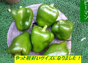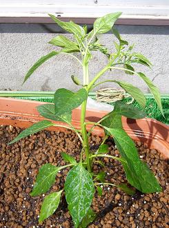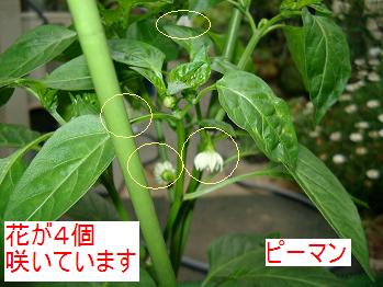 金曜日に更新できなかったのですが、写真は撮っておきました。とうわけで、今アップです。ピーマン4個花咲いたと話していたら。強風で全部落ちていました。花といっても、花びらと雄しべだけの落下です。雌しべは無事です。普通は、そんなすぐに花は落ちないはずなんですけどね~。受粉しているのか不安です。今日現在、1本だけ黄色くなってきました。他も実が大きくなりません。収穫できるのでしょうか・・・