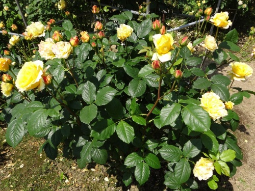 雨のち晴れ。大体関東あたりと比べて1日くらい早いのかな。雨で寒い日と夏日が交互に来るなんて馬鹿げてる。バラのお世話が思うようにできない日が続いています。花がらつみ、花びらの掃除、草取りetc.やりたいこといっぱいあるのに地植えのバラは大体色別に分けて植えています。ロイヤルジュビリーとボスコベルはお隣同士。この左端にいます。 午後5時過ぎのロイヤルジュビリーさん。バラの家の楽々オベリスクで引っ張ってるけど、自然樹形にすると高さ1.3m、幅2mって感じ。地植えだと結構場所取りますよ。 バラの家のてんちょ作、ルシエルブルー。満足できる花をまだ見たことがありません。 ホワイトイブピアッチェです。ヨハンシュトラウス。 パスカリ。 ビバリー。 アイスバーグ&ピンクアイスバーグ。並べて植えています。トピアリースティックで立ててみました。アニエス・シリジェル。何やら花が汚いです。 名前がわからないけれど、フロリバンダで棘が全くないっていう、珍しいバラです。全くどこにもありません。 これは切り花でいただいたものを挿し木したもの。ものすご~く花もちよくて綺麗だけど、やっぱりうどんこになりまくるので冬になったら抜いちゃう予定です。励みになりますのでよろしくお願いしますm(__)m ↓ ↓ ↓ ↓ ↓にほんブログ村