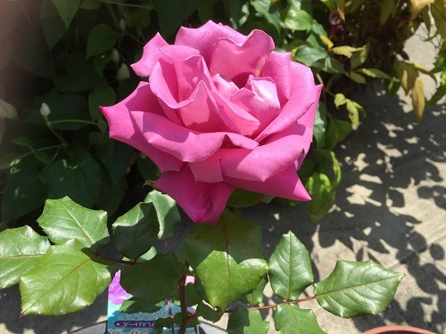 コメリに行ったら大苗の他に新苗も出ていたので安さに負けて(798円)一本買いました。これでも以前に比べれば相当セーブできてると思う。ギヨーもあったけど何故か6本あって全部がプリP.J.ルドゥーテでした。これってプリP.J.ルドゥーテっていう賞の名前なのよね。賞の名前とか庭の名前とか日本じゃあまりバラの名前についてたりしないよね。樹高0.8mっていうところはすごく魅力的です。私が買ったのはこれ!HTだったから迷ったけどJRC国際バラ品種コンクール1993年「香りの大賞」受賞ということでしたのでやっぱり、買ってしまいましたwちなみにこの年の金賞は鈴木省三先生の「熱情」です。「熱情」もうちにあったのですが、癌腫になってしまいました。在りし日の「熱情」(2013年5月8日)とても立派な花を咲かせます。香りはないけど花持ちはよく強健で初心者にもお勧めだと思います。地植え推奨ではありますが。。。◎●◎ 予約 【バラ苗】 ねつじょう 【熱情】 ネツジョウ (HT赤色) 国産苗 新苗 ○ 【四季咲き.木立.大輪.ハイブリッド・ティー】※5月末までにお届けの予約新苗以下 画像等すべて「バラの家」さんから品種名 ムーン シャドウ Moon Shadow 系 統 HT ハイブリッドティ 作出年 1998年 作出国 アメリカ 作出者 William A. Warriner 花 色 濃紫 花 径 大輪 香 り 強香 開花性 四季咲き 樹 形 直立性 樹 高 80cm~1.2m 樹 勢 普通 交配親がBlue Ribbon×実生ということですから、何代か前をたどるとPeaceの血が入ってるようです。調べてみるとブルームーンもピースの孫だったんですけれど、直系の品種というのはどこまでの血のことをいうのでしょう。やっぱり”子”だけなのかな?アイスの飾りについていたミントの葉を持ってかえって挿し芽しました。順調に大きくなってなんか可愛い。うちのモンタナ系エリザベスは老木から垂れさがってる感じがおもしろいでしょ?今日、バラ友さんちにいったらもうボタンが満開でした。早っ!藤ももうすぐ咲きそうだったよ~??せっかく糖質制限してるのに誕生日だったので(ホントは明日だけど)ケーキを買って食べてしまいました!!一番小さいのにしたけれどそれでもやっぱりwwまぁまぁ年一ということで許してもらおう・・って甘い考えだから太るんだよねwしかし、小さすぎて切りにくいw励みになりますので応援よろしくお願いしますm(__)m ↓ ↓ ↓ ↓ ↓にほんブログ村 にほんブログ村