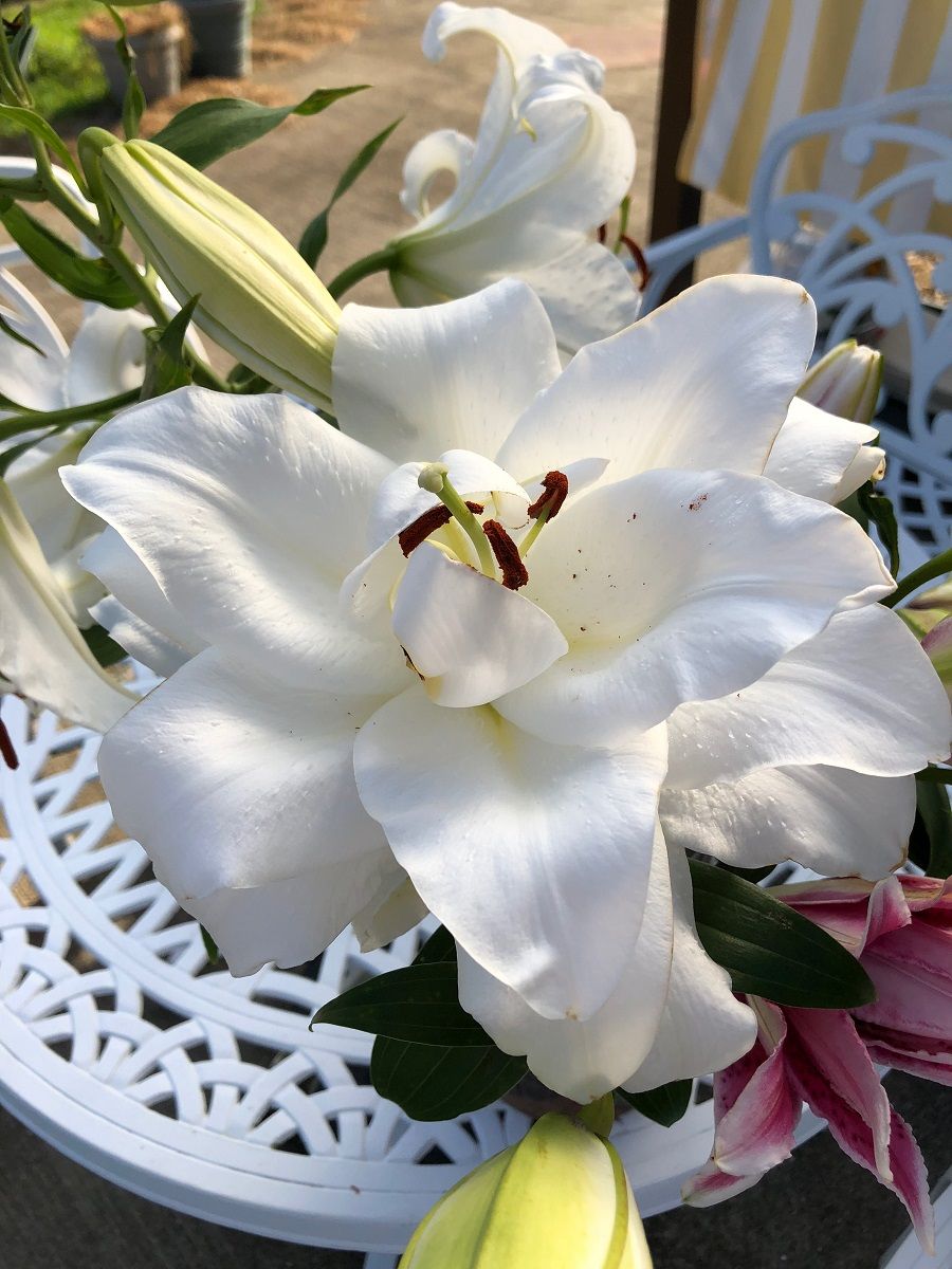 だんだん品種の区別がつかなくなってきたこちらはローズリリー アナスカ のはずw球根を植えた位置はノートに書いているので間違いないはず。少なくても自分は間違ってないはず。これは、販売元の画像をお借りすると完璧形はこれなんですよね。こういう色に変化していくのかなぁ。。こちらはローズリリー タリタ。これは完璧形はこれ↓なのでまぁこんなもの↑かなと思います。こちらはローズリリー アニカ。こちらは完璧形はこれ↓あら~緑のユリだったんですね。こちらは、ジャンボカサブランカという名前で売られていた球根。大きなカサブランカの球根っていう意味だったんだろうか??いつのまにか咲いていて気がつくのが遅かったけれどうっかり花粉を服や顔につけてしまいました。唇についた花粉がぬぐってもかなり落ちなかったのでびっくりです。口紅よりすごいwカサブランカは顔が下を向いてしまうので写真を撮るときには面倒ですね。イングリッシュローズで顔を下げるやつと同じで。。いろいろ考えていくと、花粉が出なくて花が上を向く品種に人気が移っていくのもわかりますね。励みになりますので応援よろしくお願いしますm(__)m ↓ ↓ ↓ ↓ ↓にほんブログ村 にほんブログ村