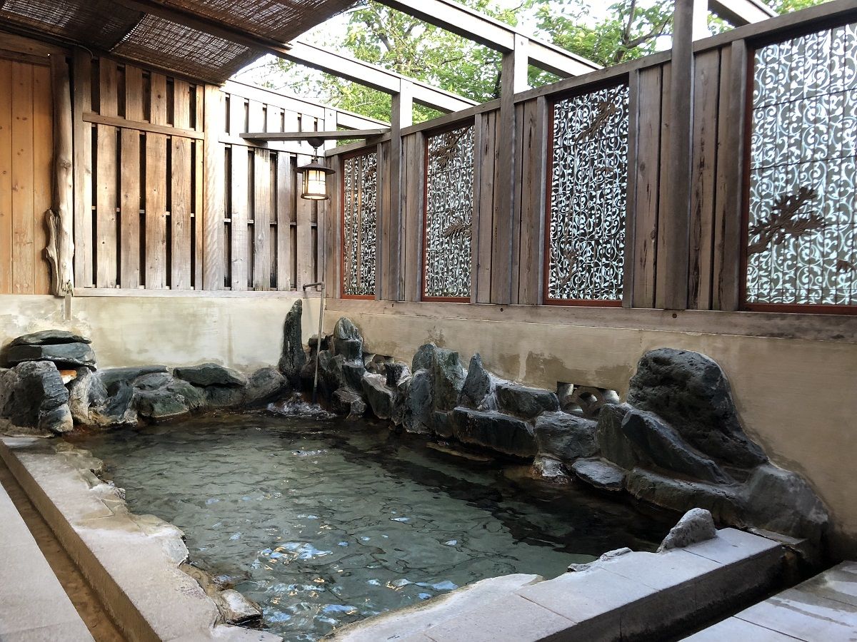 家族風呂がふたつあって一つは露天、もうひとつは小さめの内風呂です。