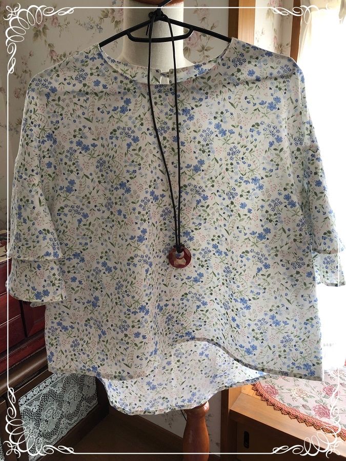 前回作ったダブルフレア袖のブラウスの丈が長すぎたので切りました。