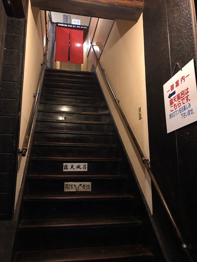 2階のロビーから廊下を歩いて浴場まで行きます。
