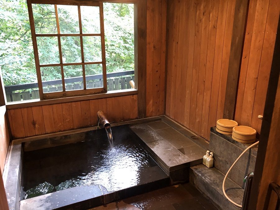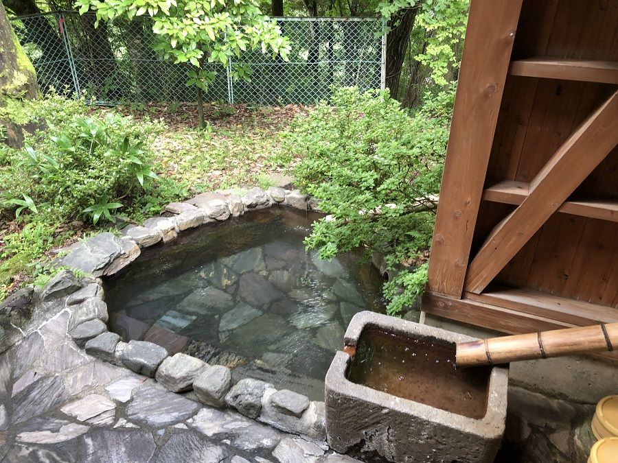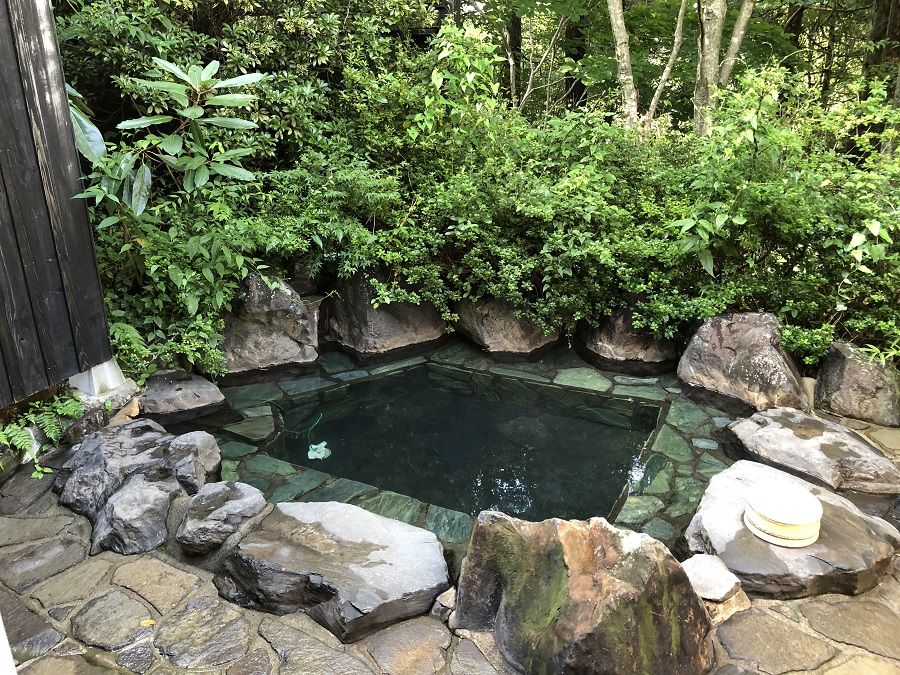 貸切風呂があるので先に行ってみました。室内風呂が2つ、露天風呂が1つ。手前から「風の湯」「椿の湯」露天風呂の「星の湯」となっております。露天風呂からは本当にきれいな星が見えそうでしたよ。もちろん、宿泊者は無料です。