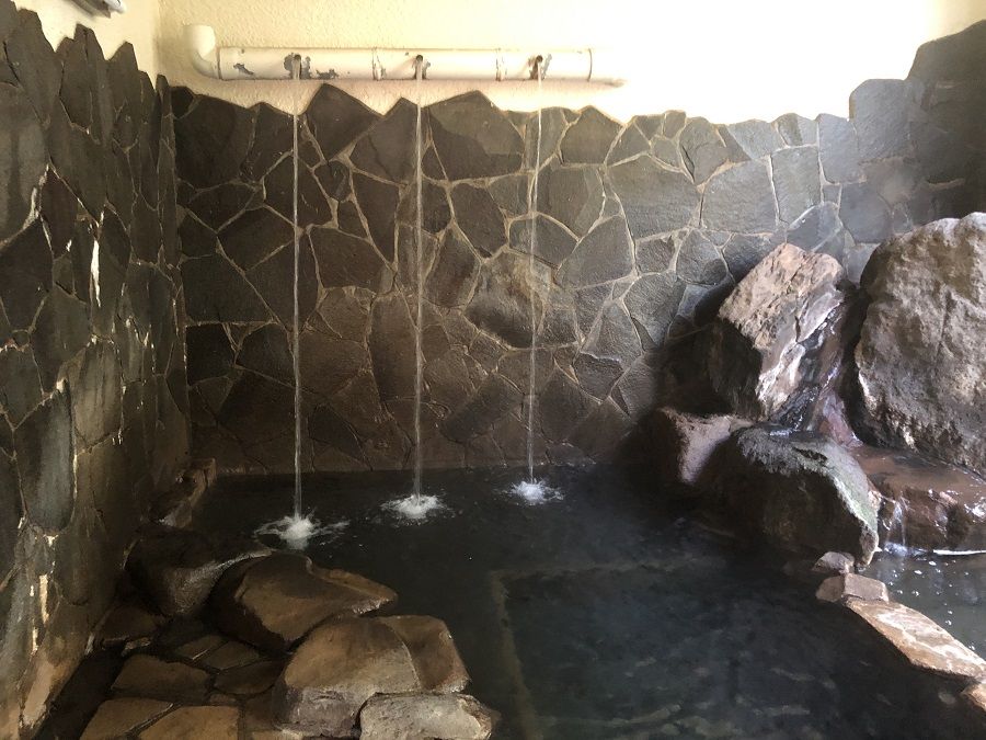 大浴場には打たせ湯もあってとてもよかったです。大浴場奥には露天風呂があって、天気がよかったせいか、とても清々しい感じがしました。洗い場の数が少なかったのが難点かな。
