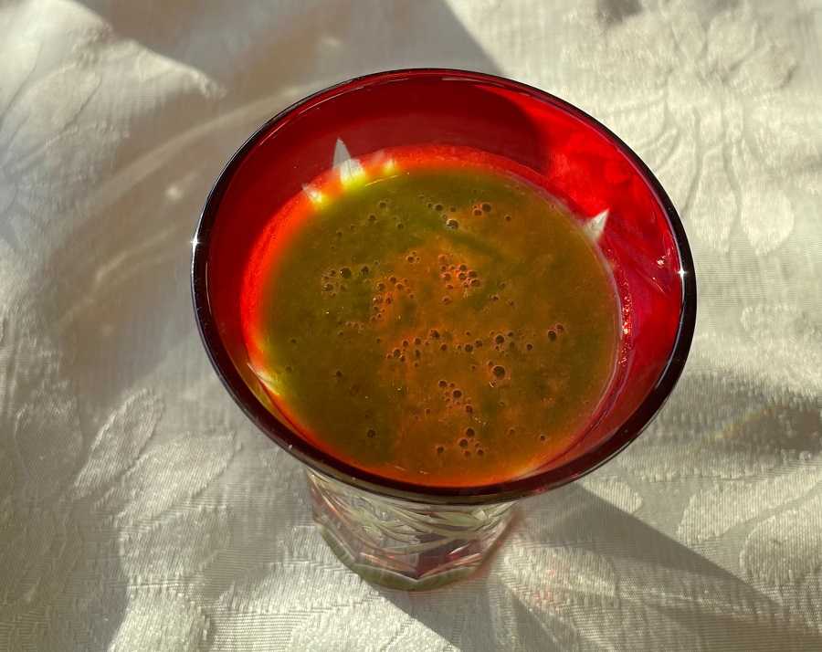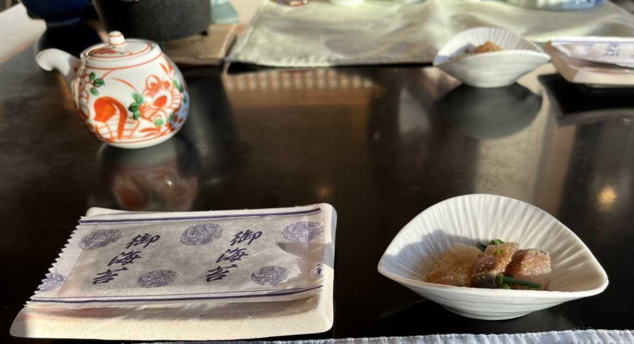 ◎先付 蒸し鮑とピーマンの赤味噌掛け