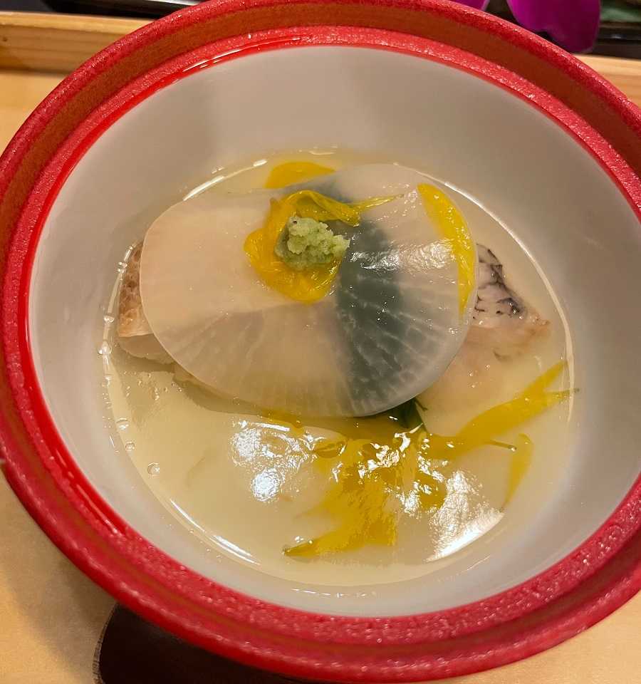 ◎蓋物 甘鯛と大根の酒蒸し 菊花餡 春菊