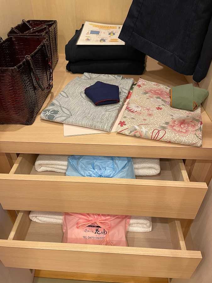 浴衣は部屋に置いてあるのではなくて、チェックイン時に自分で選んで持っていく感じです。