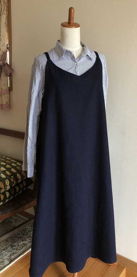 厚くなく、柔らかくて縫いやすいけれど、さすがにデニムだけあって重さがあるので、ストンと落ちてなかなかいい感じです。ないとイラつくので脇ポケットはつけましたよ。別にこのデザインならストレッチ布である必要はなかったけど布を買ってからデザインを決めたのでしかたがない。5mカットで買ってしまったので他にもなにか作らねば。。