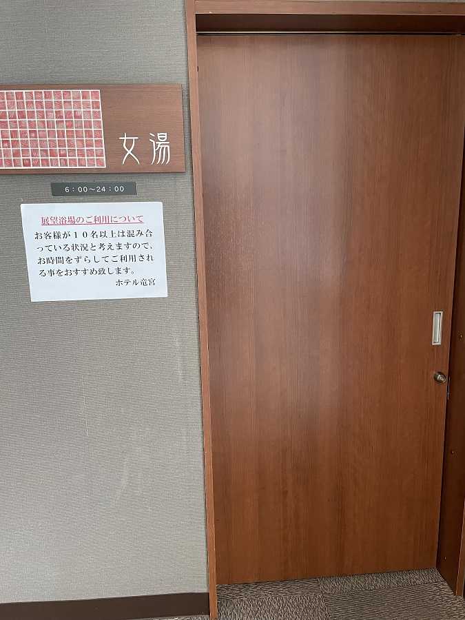 ホテル竜宮さんの大浴場には自主的な人数制限のおすすめが。10名以上の時は混みあっている状況なので時間をずらして利用するのをおすすめします、とのこと。