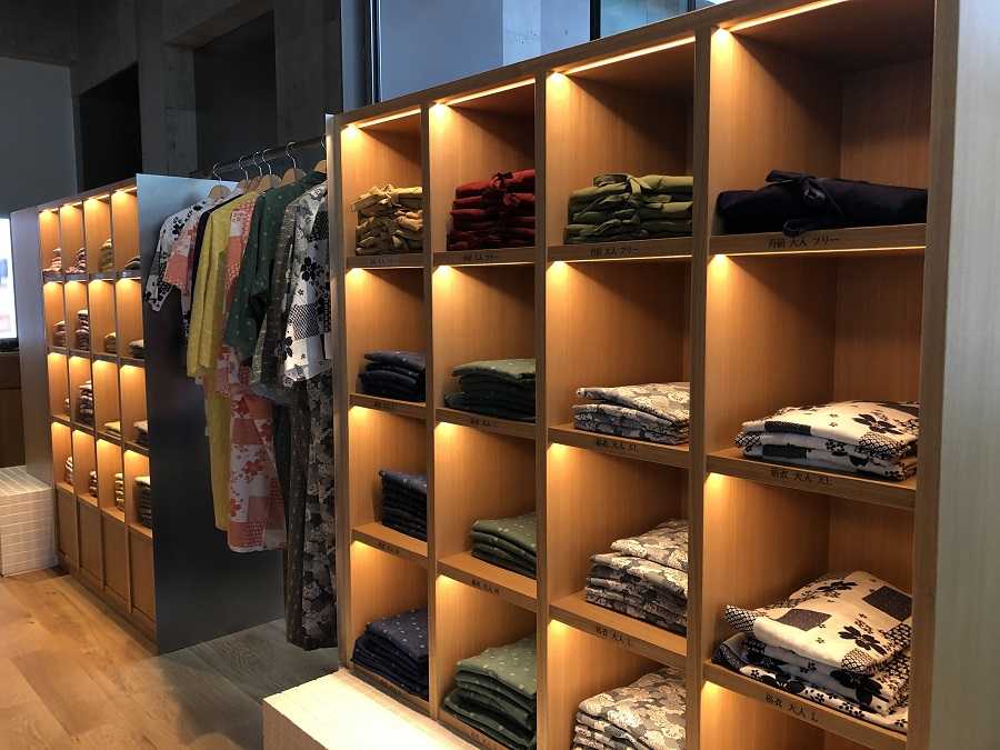 お部屋には作務衣の準備はされていたのですが、フロント横で浴衣などが選べるようになっていたので、ほとんどの方が浴衣を持って部屋にあがっていました。