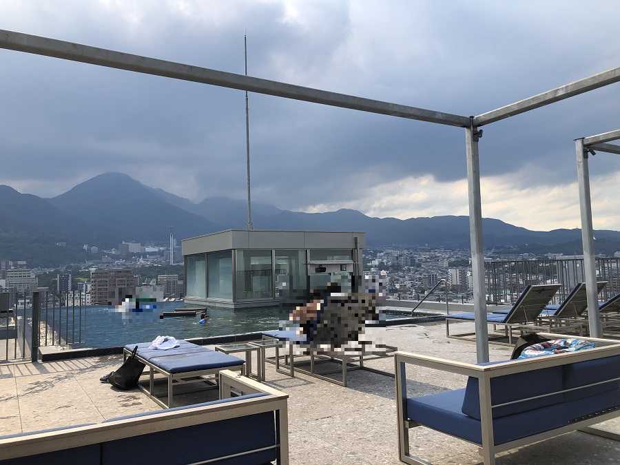 こちらのプールもインターコンチネンタル別府と同様に水着用オムツ着用の幼児の使用も許可されていましたので、午後4時前に見に行った時にはおチビちゃん連れがほとんどでした。が、そのあと入った大浴場の脱衣場でオムツのテープが半分外れてダラリとオムツが垂れているお子様を目にした時には、やはりあまり目にしたくない光景だったな~と思ってしまいました。