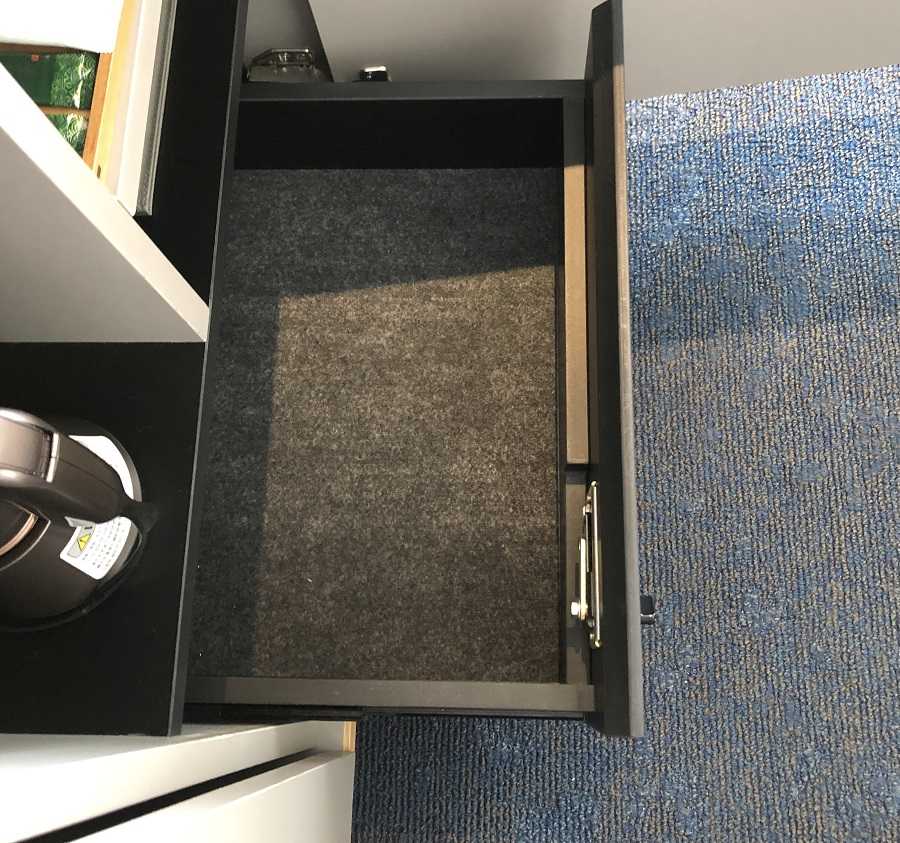引き出しのような使い方のセーフティボックス。いろいろな操作が備え付けのタブレットでできるということでしたが、余計面倒なので一回つけてみただけで使うのはやめました。