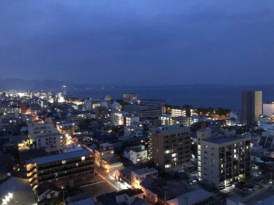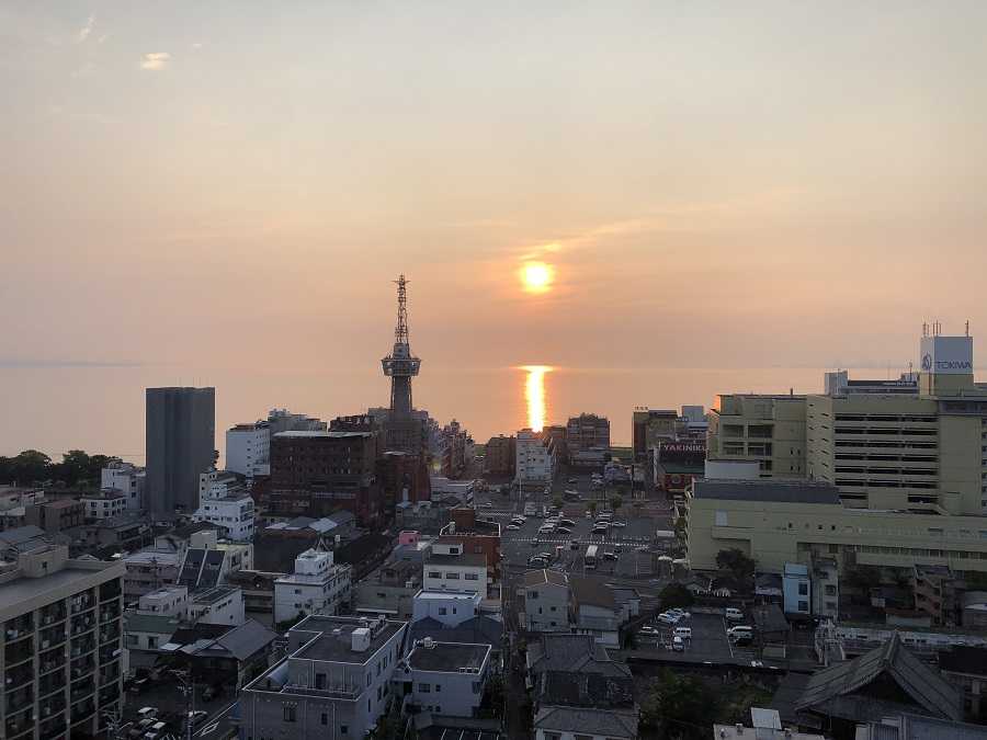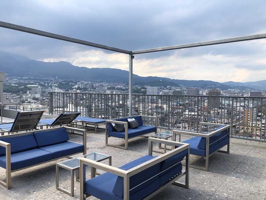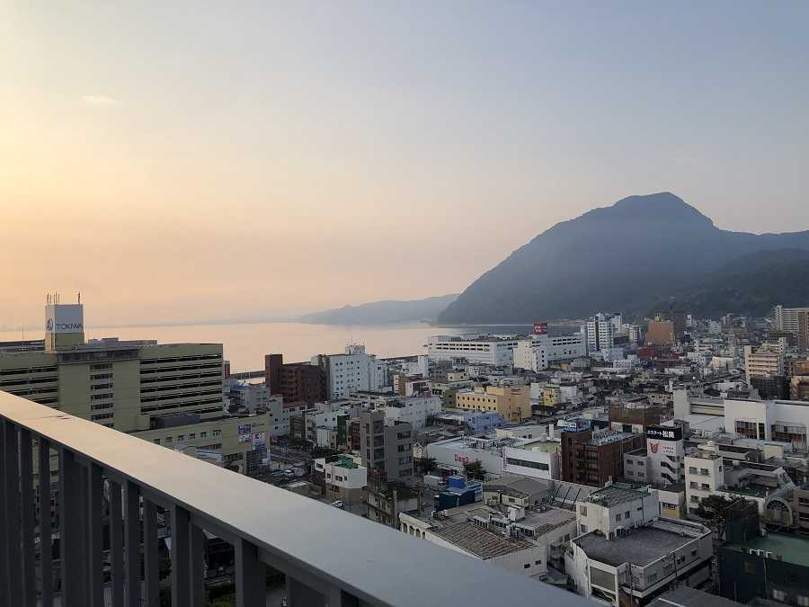 隣に見える、茶色の建物は系列の アマネクイン別府 です。ホテル自体には駐車場はありませんが、提携の駐車場でチェックインから24時間以内は500円です。宿泊料金は先払いなのですが、駐車場料金もチェックイン時に支払うことができました。チェックアウト時刻が11時になっていたので、「公式で予約したら1時間延長って書かれてたんですが?」と言ったら、「それなら12時までで。」とのこと。適当だなぁ。
