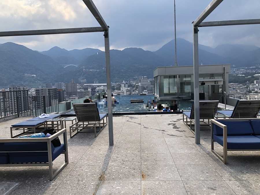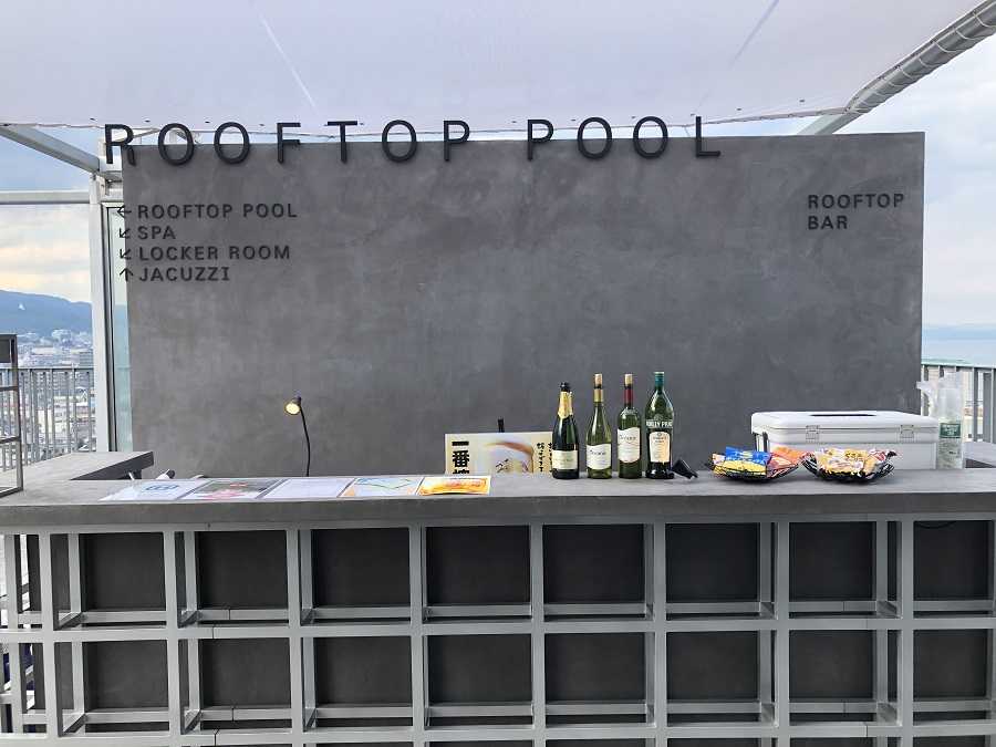 15階が温泉インフィニティプールになっています。利用時間は6:00~22:00。温泉プールなので温泉分析書も貼られていました。泉質は単純温泉です。