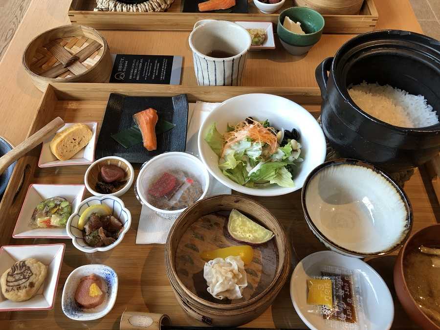 朝ごはんは7時から30分ごとに選べるようになっていたので7時半開始にしました。朝食は先に和食か洋食か選んで、主要なものは運んできてくれるのですが、サラダや小鉢の類は自分で選んで持っていく方式。