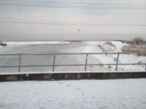 川も凍ってます。