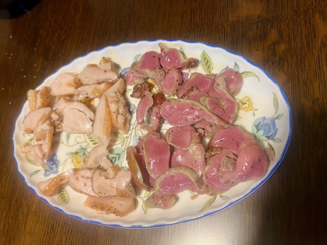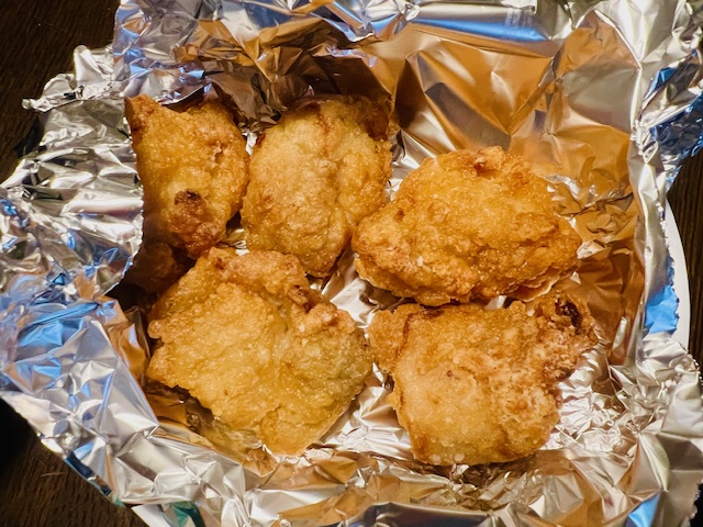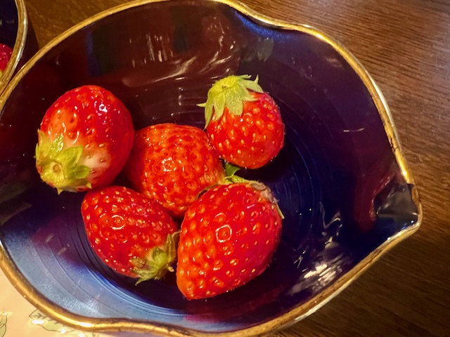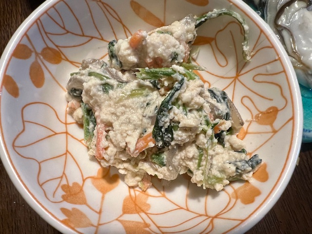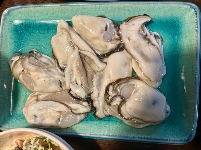 夕食は、鶏唐揚げ・レモン果汁、生牡蠣・ポン酢、スモーク笹身・砂肝、蒟蒻・ほうれん草・人参の白和え、ニラ玉汁、いちご・とちおとめ。