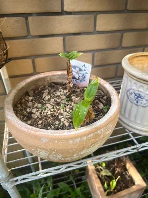青い塗り鉢に植え替え、盆栽みたいにしてみようかと思います。