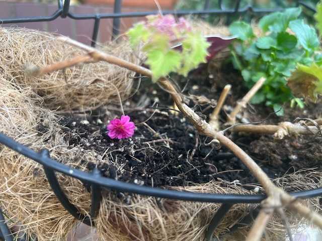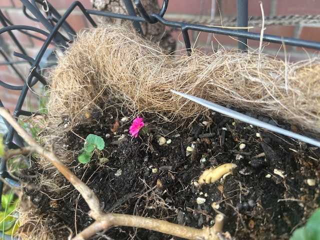 このハンギングバスケットからもポーチュラカを抜こうかと思ったけど、