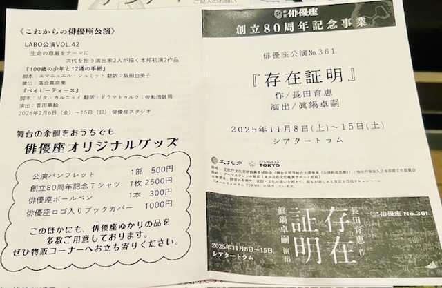 六本木の俳優座スタジオで観劇「存在証明… 2025年11月14日