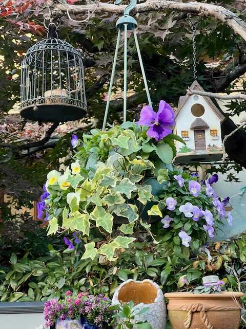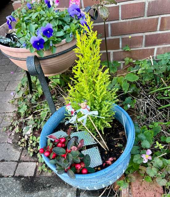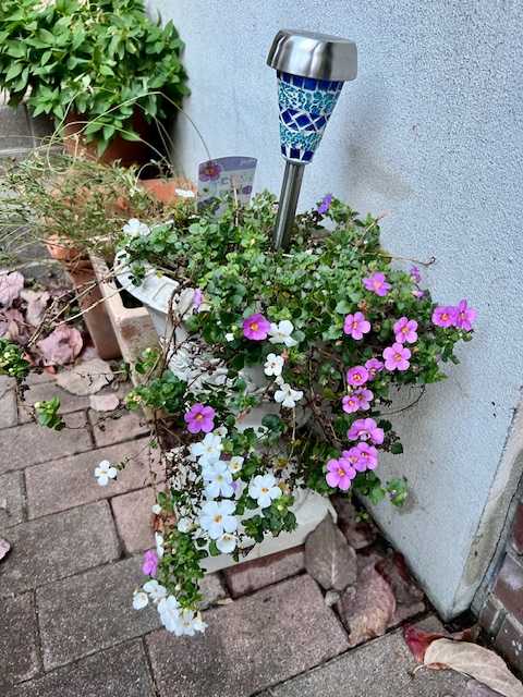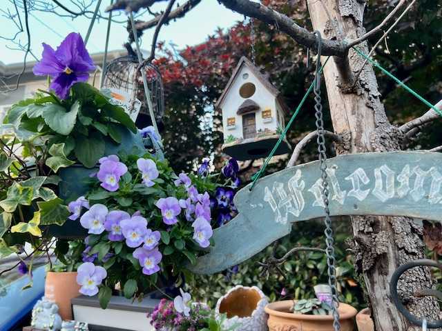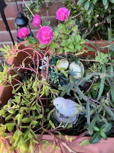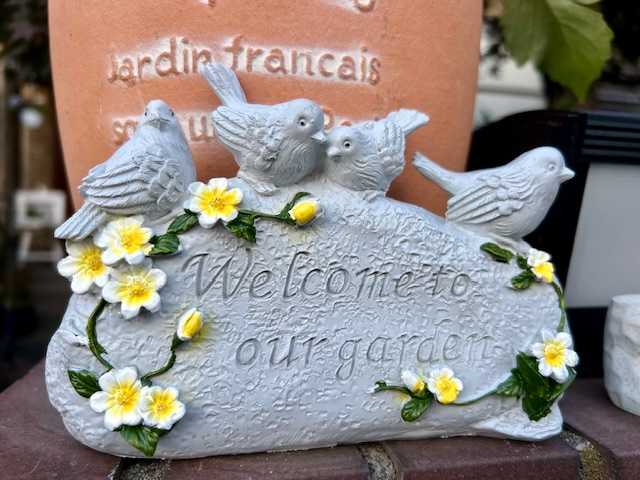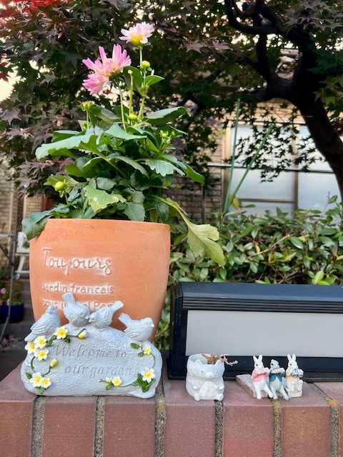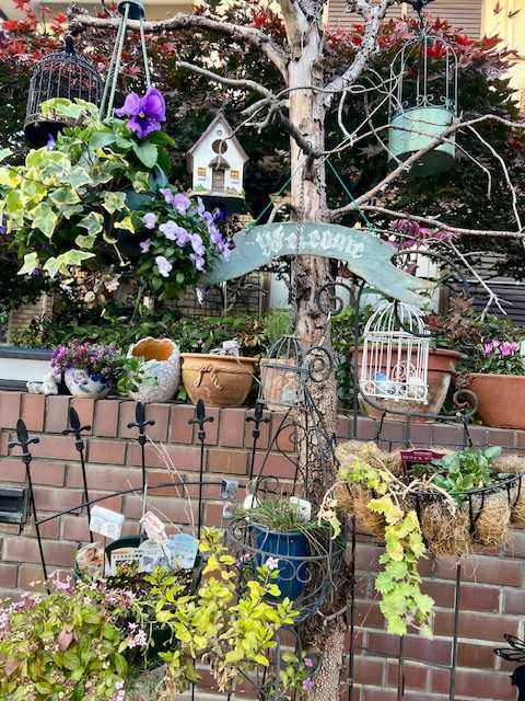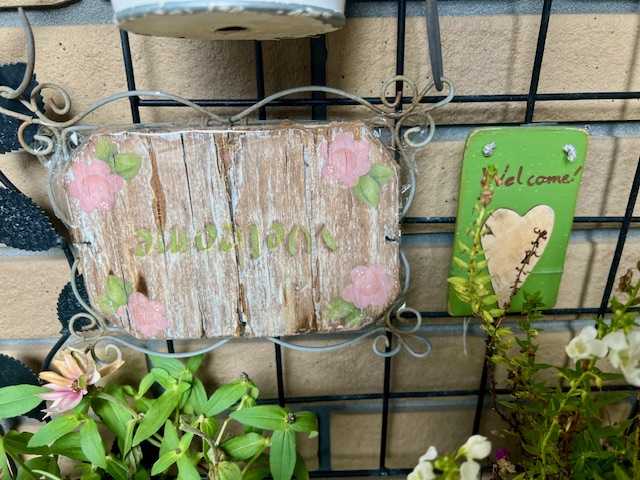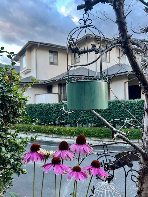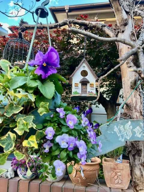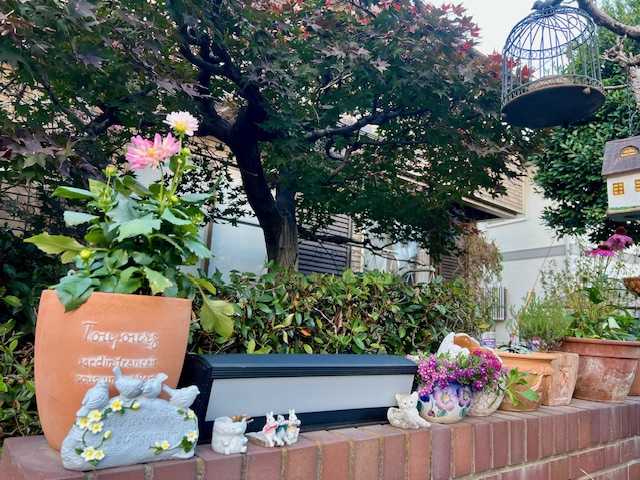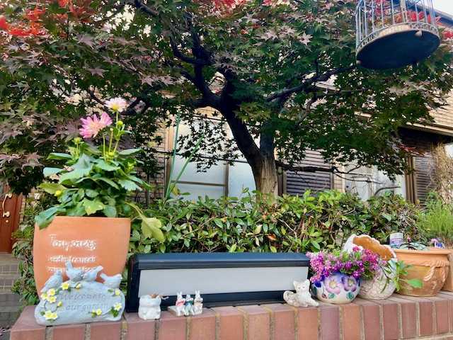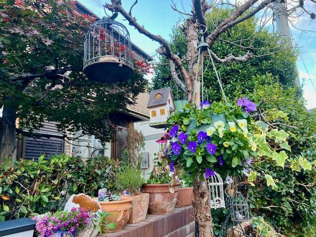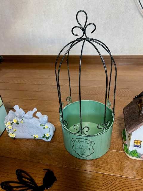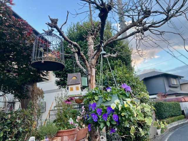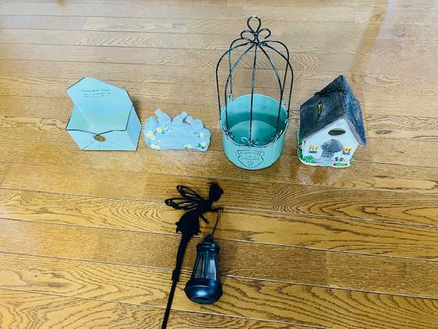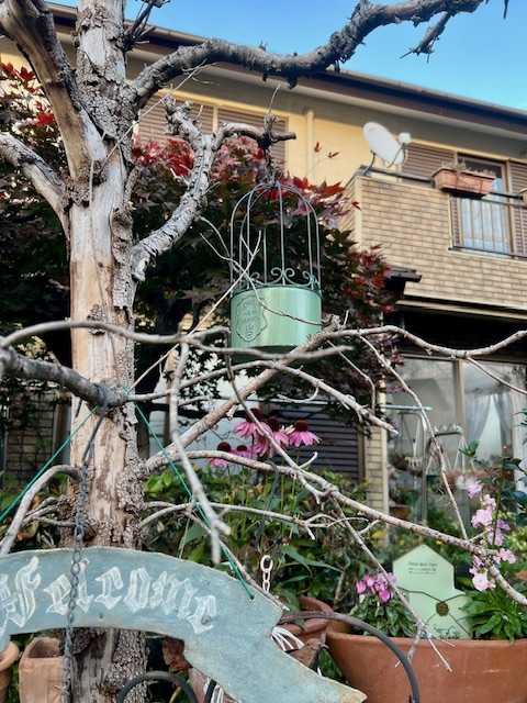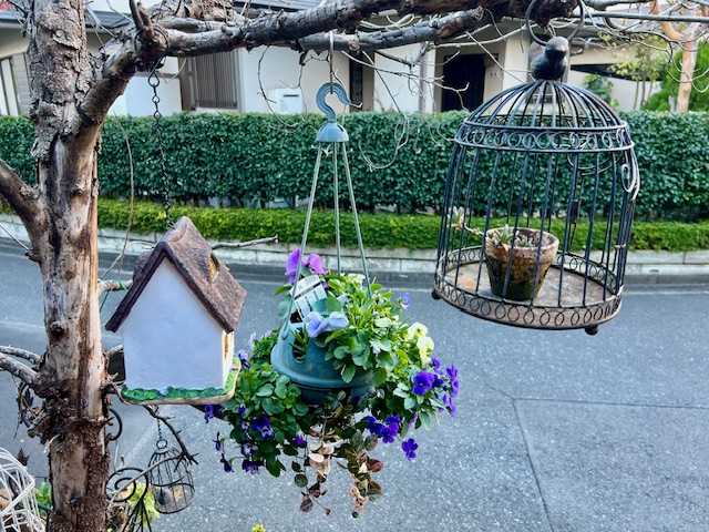 鳥のウェルカムボードを塀の上に置いたり、 巣箱や鳥かごを、枯れたハナミズキに掛けたり、 レターパックを鉢に置いたり、 ティンカーベルのソーラーライトをハナミズキの下の花壇に挿したりしてみました。 鳥グッズが多いなあw うちの花も