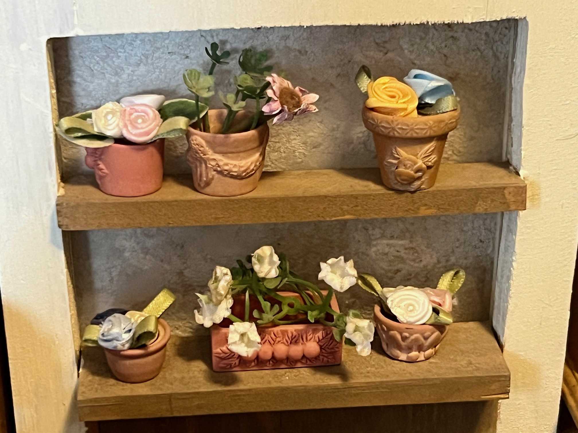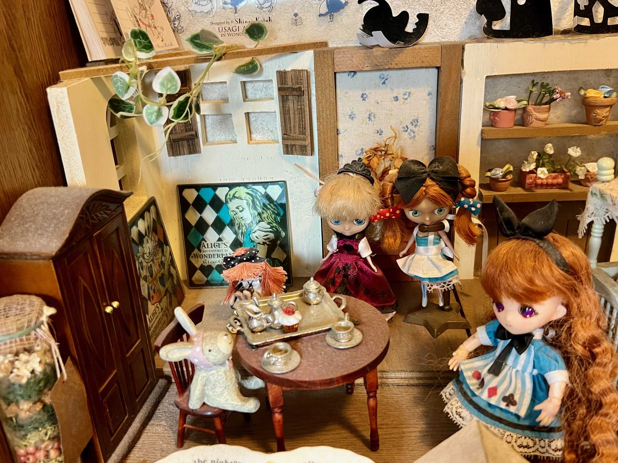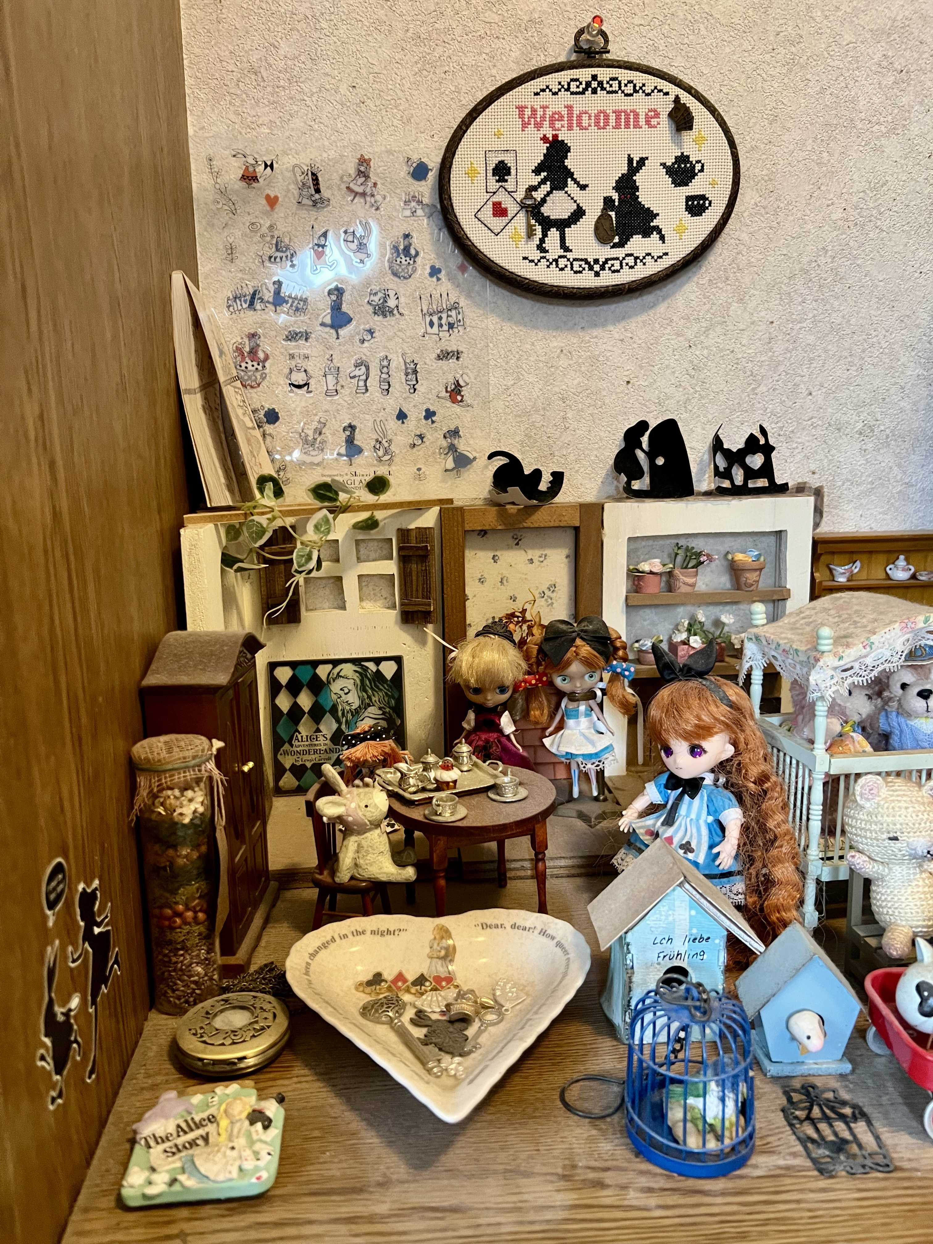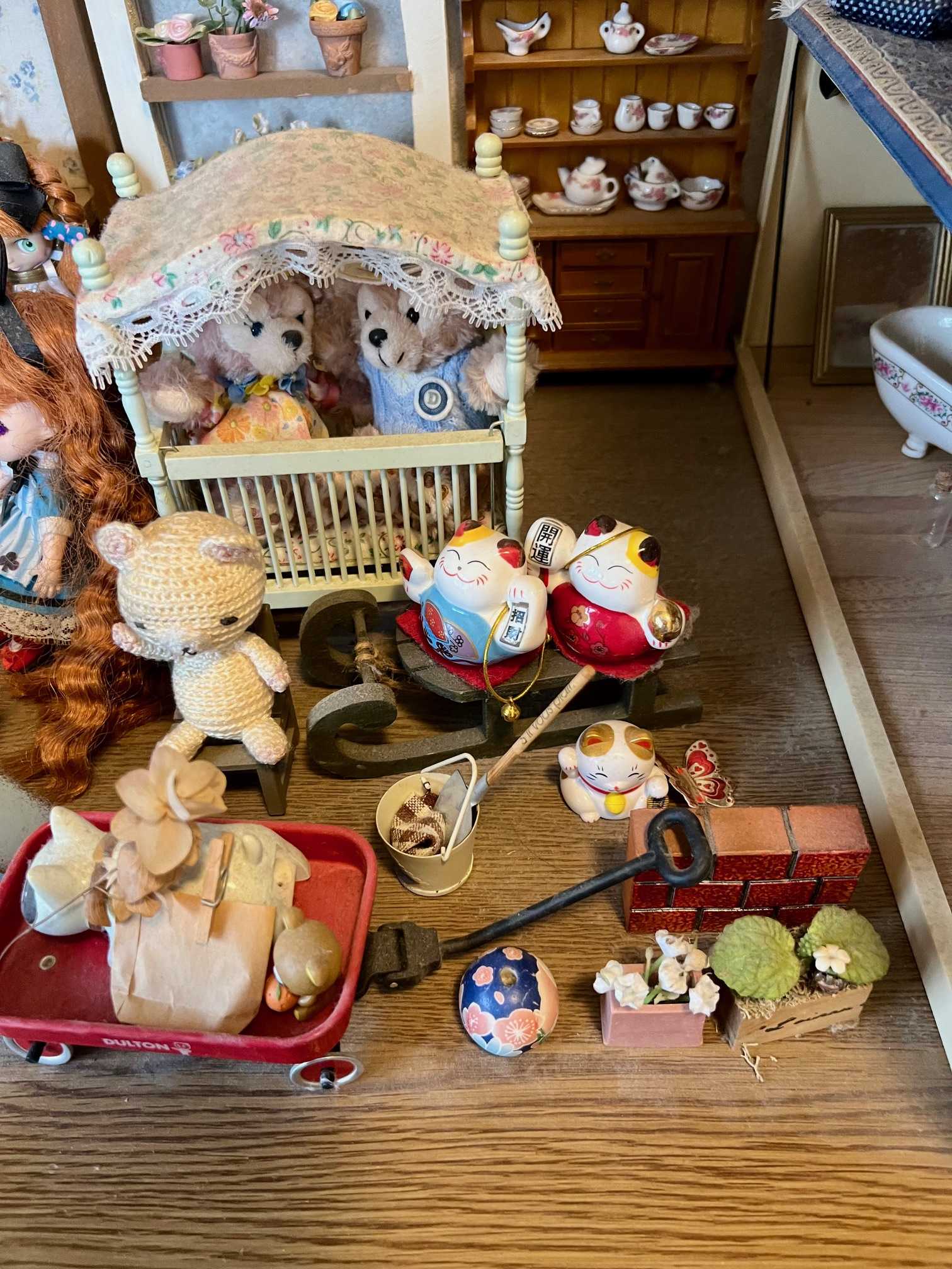 昨日着いた鉢ラックを組立てて、玄関に置く予定。玄関を撮影してたら、ミニチュア、ドールハウス、不思議の国ワールドなども撮ってしまった。息子の分身?の赤ちゃん人形もw