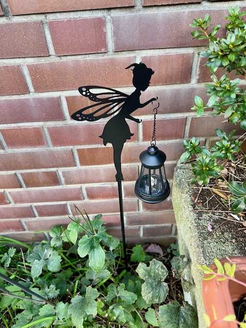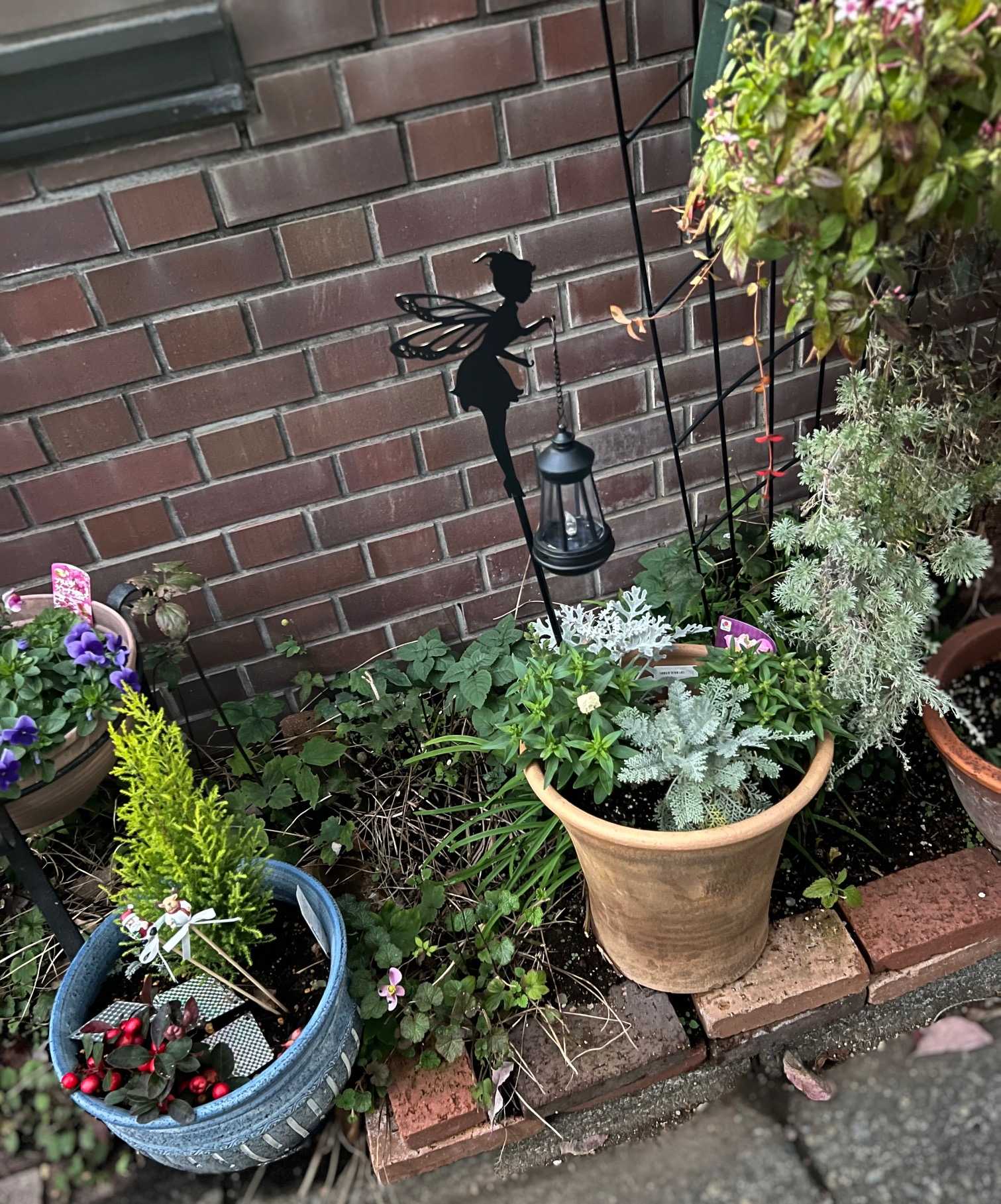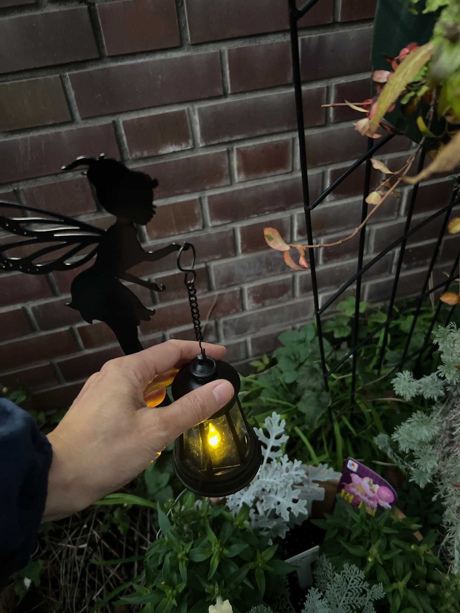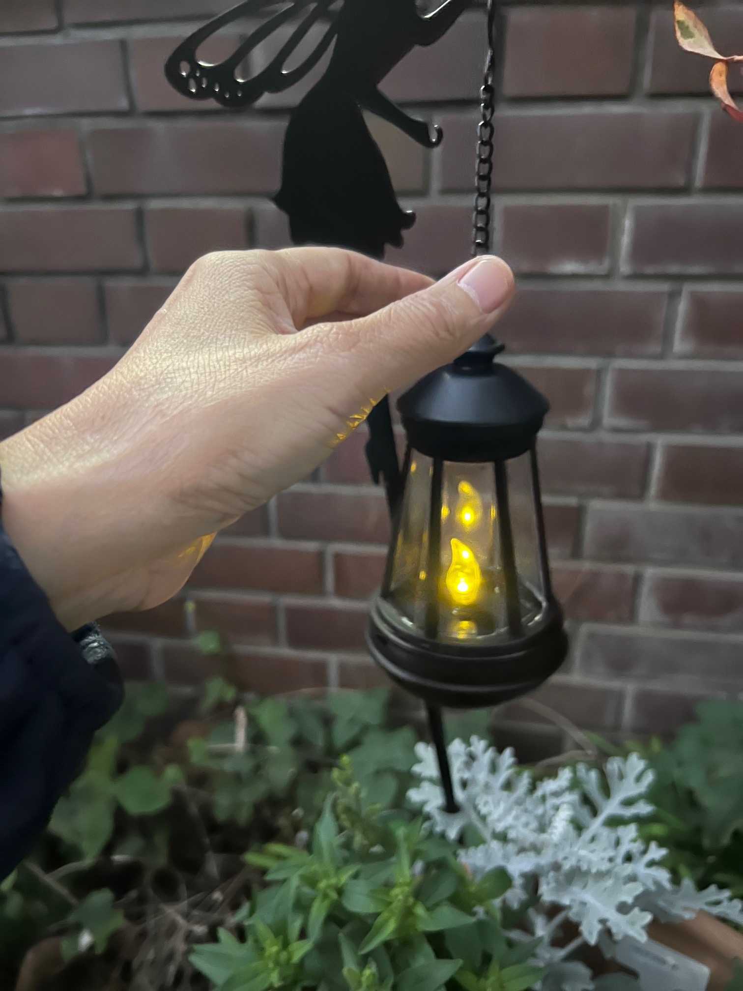 ティンカーベルのソーラーライトをハナミズキの下の花壇に挿したりしてみました。