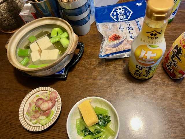 夫は、好きな豆腐で、湯豆腐を作って食べてました。私の体調が少し悪いので。
