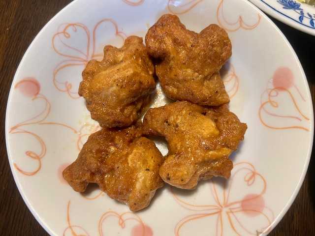 冷凍唐揚げを4個追加。夫と2個ずつ食べました。レモンをかけて。