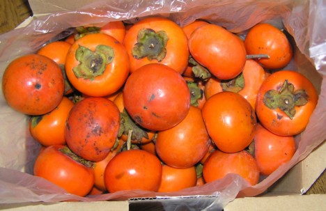 だいたい11月15日頃から柿がとれる。テーブルの上にたくさんの柿を並べる。1週間くらいたつと、水分がさがって柿の形が落ち着いてくる。その中の何個かを選んで描き始める。描き出したら、その柿に指一本もふれない。ふれると、触れたところから腐ってくる。